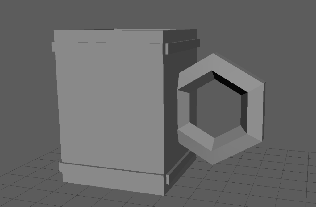 On each side of the model, I added cube primitives that had been rescaled and stretched to act as the design of the mug. I wanted the mug to feel as if it was handmade, and these cubes attached to the side of the mug were holding it together, in a similar way to how metal hoops hold the wooden staves of a barrel together.