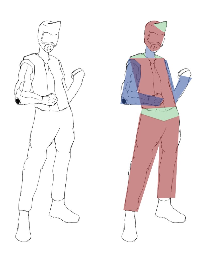 As an example, the design in the bottom right draws inspiration from the character Urgot in the 2020 “Warriors” cinematic by Riot Games, featuring a torso that is significantly larger than the other designs, which creates the effect that this character is looming over the others; this can convey the character’s strength to the player, but with the inclusion of triangular shapes on the arm, it can also convey their dangerous nature as well – forcing the player to come to the conclusion that “this character is not an ally” and “this character is dangerous”.