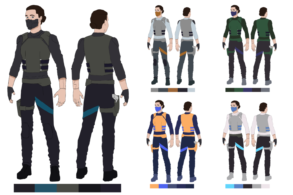 When initially designing my character’s visuals for 3D Character Design, I wanted to explore various ideas for the body type, the outfit’s colour palette and accessories before settling on my final design.