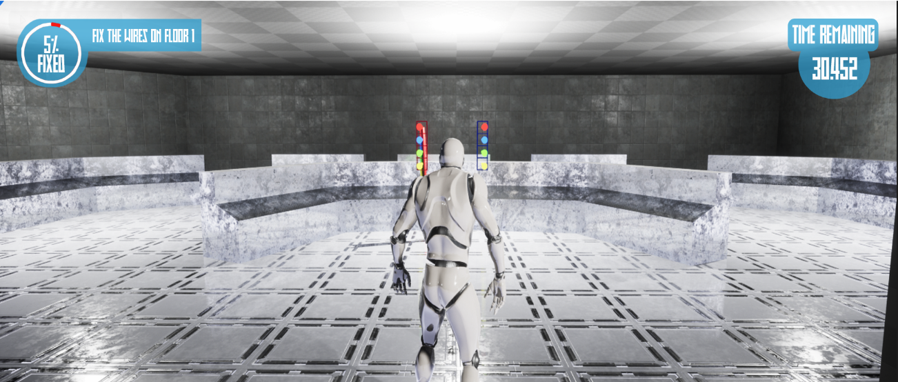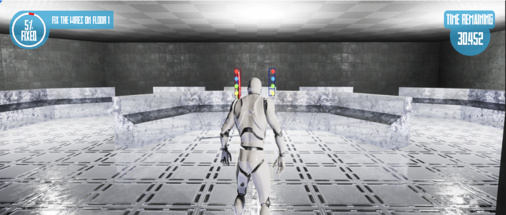 I created a mock-up of what the HUD would look like for our second prototype. As we wanted this prototype to be narrative-driven, I wanted the HUD to be hidden whilst the player is navigating and moving through the space and would reappear when the player is stopped, which would be non-invasive to the player’s experience.