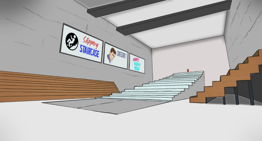 I created some concept art for Hank’s desk and how one of the challenge areas could potentially look as supporting material for the Game Pitch Assignment. As Aaron’s model of Hank is small in stature, I included books for him to stand on, giving the impression that he is of average height when behind the desk.
